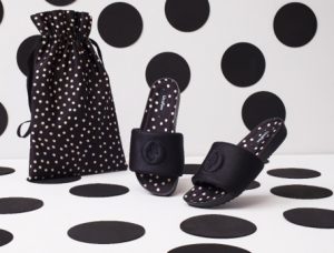 O segundo kit traz um slide com palmilha em poá em uma embalagem delicada na mesma estampa.