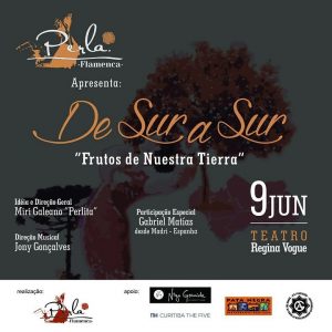 A primeira temporada do espetáculo De Sur a Sur, “Inspirados em la Raiz Bailamos Nuestro Sentir”, foi uma afirmação do Flamenco local, valorizando as raízes desta arte. Nesta segunda edição – “Frutos de Nuestra Tierra” -, o objetivo é prestigiar e homenagear os artistas do nosso Sul que contribuem e enriquecem esta arte, fazendo uma ponte entre a cena flamenca da Espanha e do Brasil.