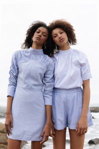 As formas orgânicas, soltas no corpo, repetem a modelagem sofisticada do inverno, mas agora recebem repuxados e amarrações que dão margem para mais de um modo de usar. Essa continuidade do discurso estético torna as peças das duas coleções intercambiáveis. “Uma vez, um professor de arquitetura me disse que a cidade é um palimpsesto, ou seja, uma sobreposição de coisas: pixo em cima de tinta, lambe em cima de pixo e assim vai. Essa conexão entre as coleções, o novo em cima do antigo, também é uma metáfora disso”, explica a arquiteta Mariah Salomão, diretora criativa do NovoLouvre.