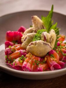Entre as sugestões da casa, estão entradas que exploram frescor, acidez equilibrada e diferentes texturas: