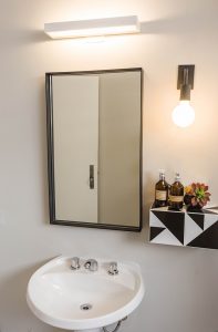 Já para banheiros e lavabos, as arandelas resultam em luzes frontais e difusas, clareando de forma uniforme. Vale posicionar acima ou ao lado do espelho, servindo para auxiliar nas tarefas de higiene pessoal ou maquiagem.