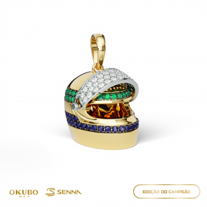 Outra peça especial, que será lançada como um item de colecionador, é um pingente de capacete em ouro amarelo e ouro branco, cravejado de gemas nas faixas azul e verde. A joia de edição limitada terá apenas 30 unidades numeradas, em homenagem aos 30 anos do legado do Senna.