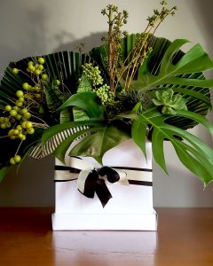 O flower designer, Rico Prado Lobo Flores, compôs arranjos tropicais e verdes com Costelas-de -Adão, Espadas de São Jorge, Folha de Latania e sementes e se apresentam no tamanho pequeno e médio para os kits com preços entre R$360 a R$598.