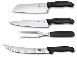 A linha de cutelaria da Victorinox no Brasil é completa: são mais de 130 itens, entre facas do Chef, facas de desossa, facas serrilhadas, cutelos e cepos. Além disso, há muitos utensílios, como tábuas, afiadores, descascadores de frutas e legumes, tesouras e raladores.