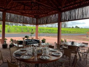 Visitas e Osteria – Depois da implantação dos vinhedos, veio a ideia de investir em uma Osteria para possibilitar uma experiência completa aos enoturistas. O local foi projetado pela arquiteta Sissi Verri e a cozinha está a cargo da chef Beatriz Nomelini, gastrônoma, com pós-graduação em docência do ensino superior, MBA em Marketing com ênfase em negócios gastronômicos e especialização Master Chef pelo Culinary Intitute of America da Califórnia e adepta aos conceitos de “comida de verdade” e incentivadora do ” Farm to table”.