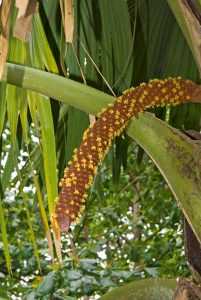 O coco de mer é a maior semente do mundo, podendo chegar a mais de 30 cm de diâmetro e 25 Kg. Seu nome significa “coco do mar”, dado que em séculos passados marinheiros europeus viam as sementes boiando e acreditavam que elas cresciam dentro dos oceanos. A semente tem um formato bastante diferente, que parecem nádegas, o que gera curiosidade de todos que a conhecem ao vivo. Inclusive, a planta tem tanto sua versão feminina, mais famosa em formato de nádegas, como sua versão masculina, mais comprida e também com um formato bastante sugestivo, o que ajuda a alimentar a lenda do fruto proibido no Jardim do Éden em Seychelles.