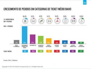 Completam o ranking das mais pedidas em 2018 Casa & Decoração, com 11,1%, Eletrodomésticos, com 10,6% (campeã no ranking de faturamento) e Livros, Assinaturas & Apostilas, com 7,5%, outra categoria com um ticket médio não muito alto.