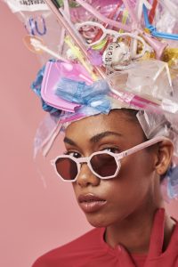 Em parceria com a designer Juju Lattuca, nasceu a ideia da coleção lançada pela marca carioca uma série limitada de óculos cor de chiclete, tom das características listinhas do terceiro item mais encontrado em limpezas de praia mundo afora.