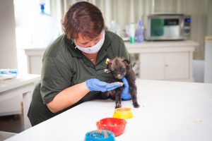 “Assim que os animais chegaram, nós fizemos uma avaliação clínica em cada um deles. Realizamos uma análise bem detalhada, pesagem e, depois, os alimentamos. No geral, eles estavam clinicamente bem, mas com indícios de desidratação, já que ficaram 48h sem os cuidados da mãe. Além disso, observamos que as mucosas estavam pálidas, indicando uma possível anemia”, conta Fernanda Mergulhão, médica veterinária do Zoológico de Brasília.